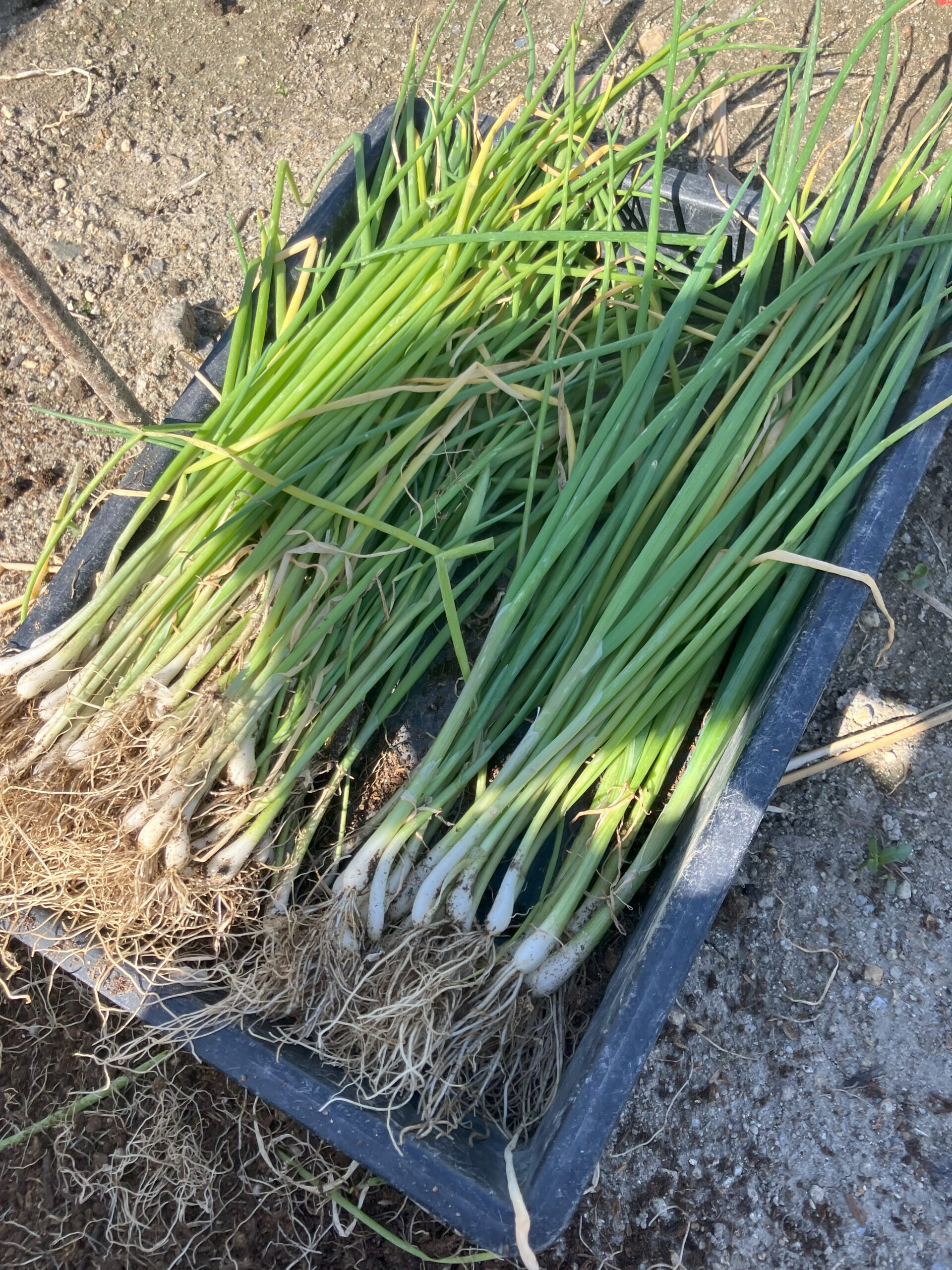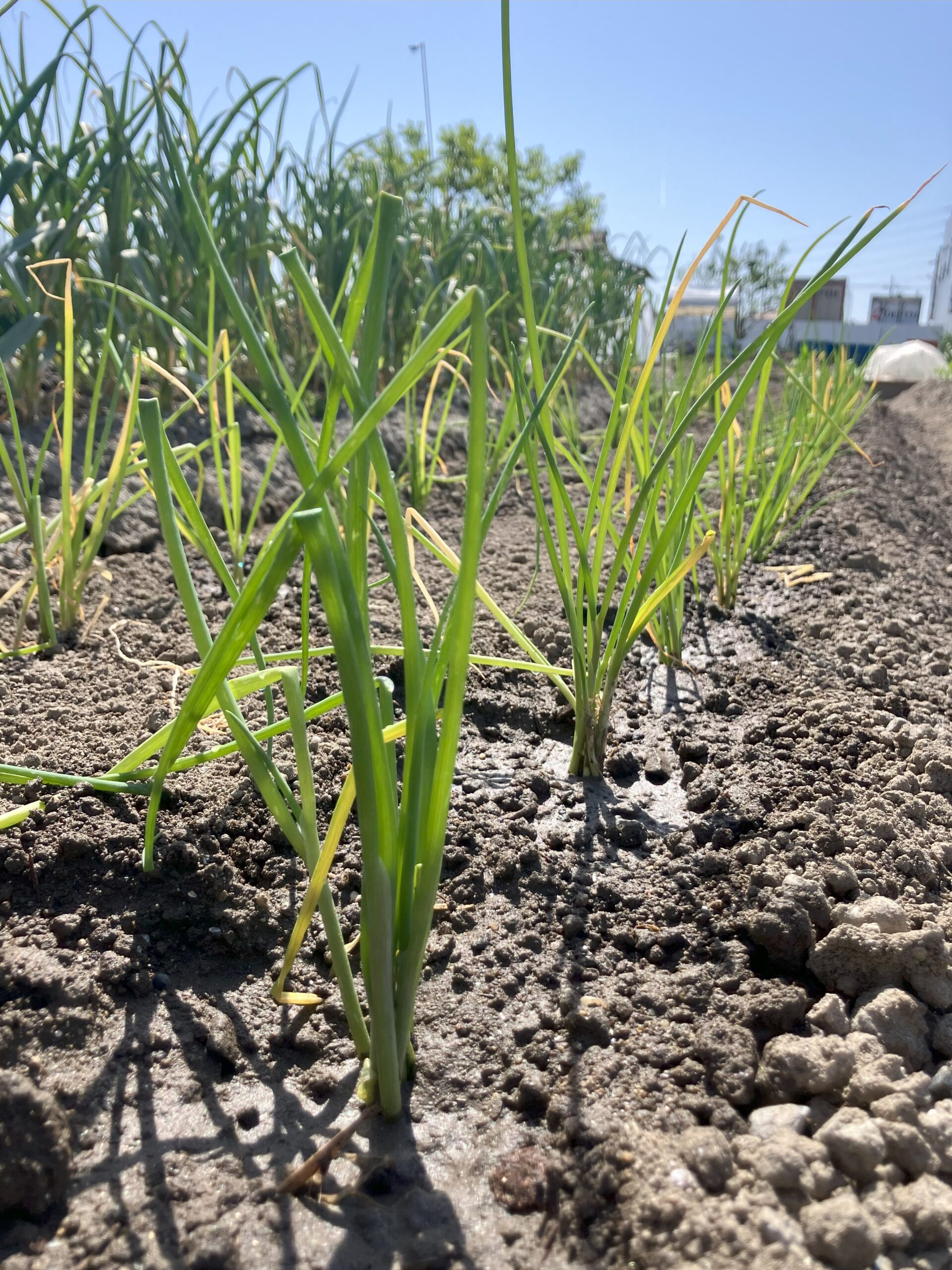 今回は工場の近くの無料貸農園でネギの苗を植え替えました。