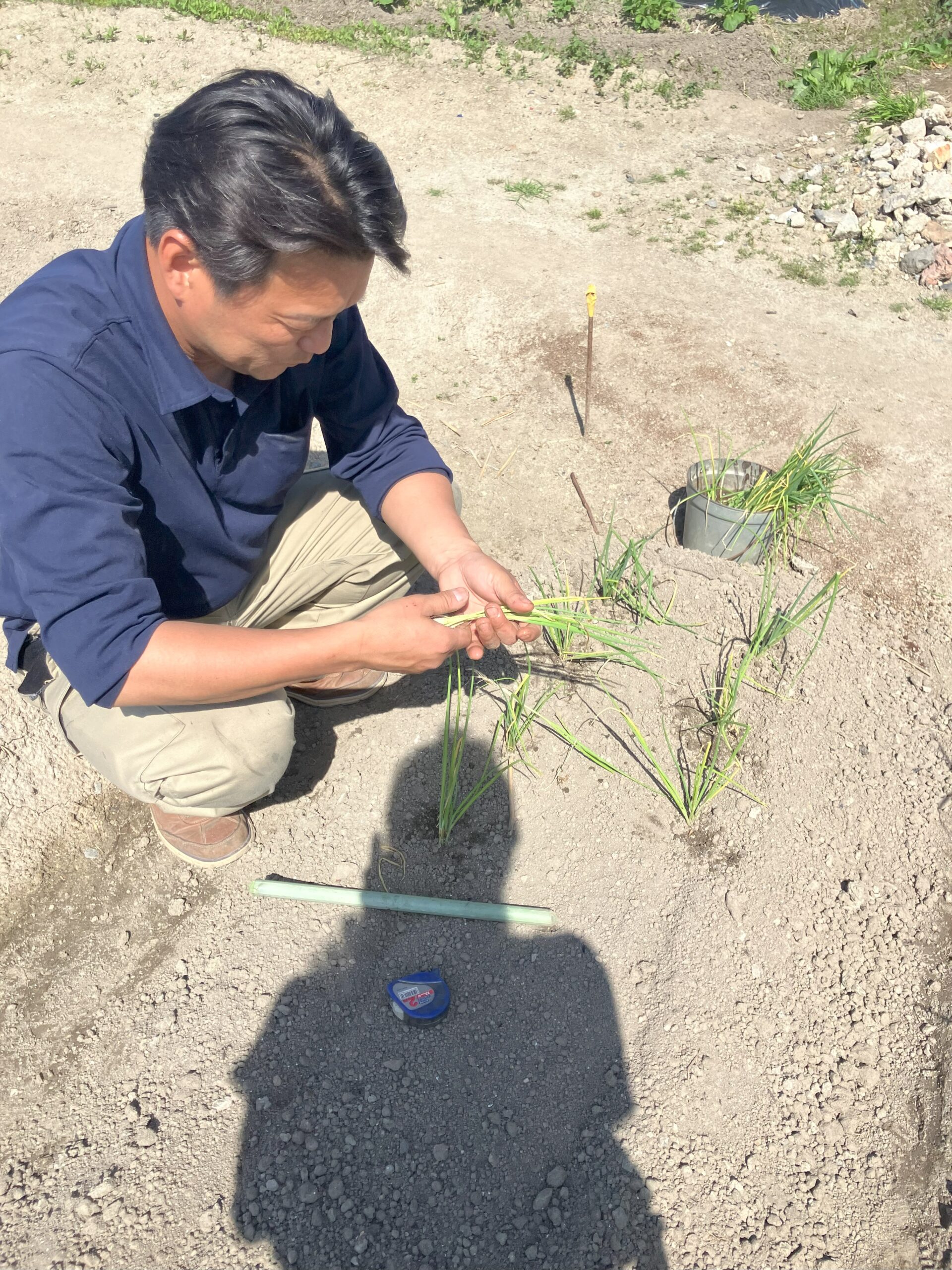 とても親切な農地オーナーさん、今回も耕運機をかけて準備してくださり、植え方のレクチャーをしてくださりました。