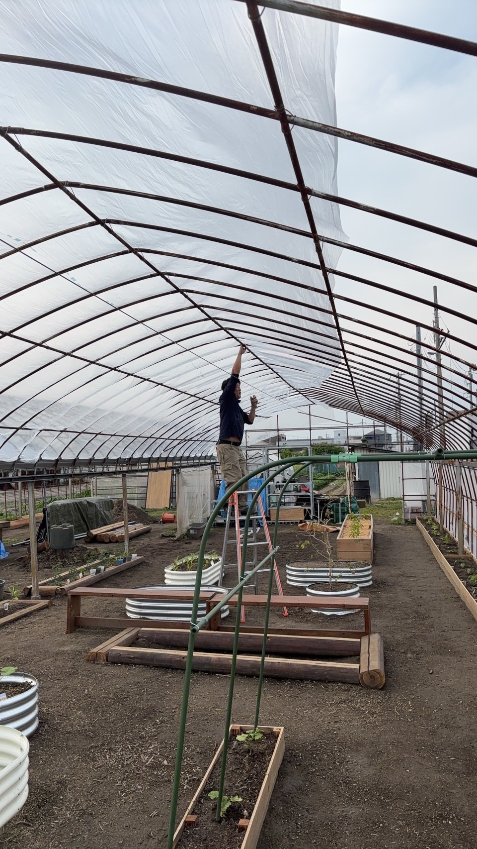 今回は二人で役割分担しながらひとつのビニールハウスを完成させました。